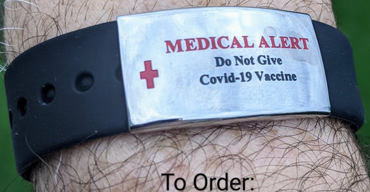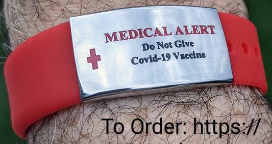 Red Silicone Bracelet With: "Do Not Give Covid-19 Vaccine" on a Stainless Steel Plate
