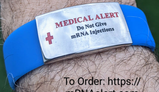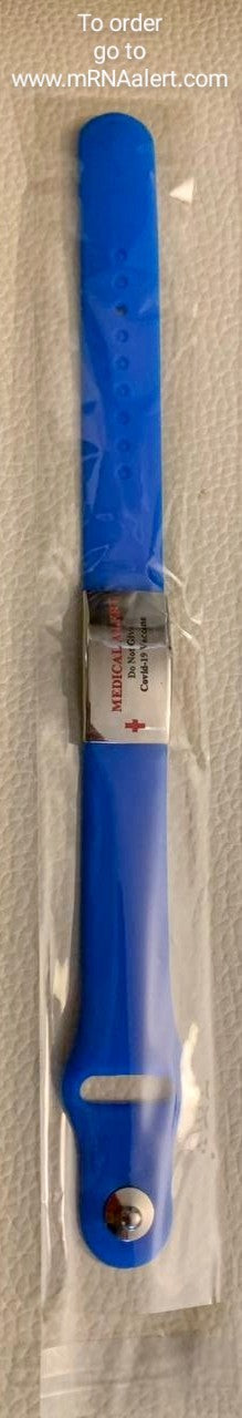 Blue Silicone Bracelet With: "Do Not Give mRNA Injections" on a Stainless Steel Plate