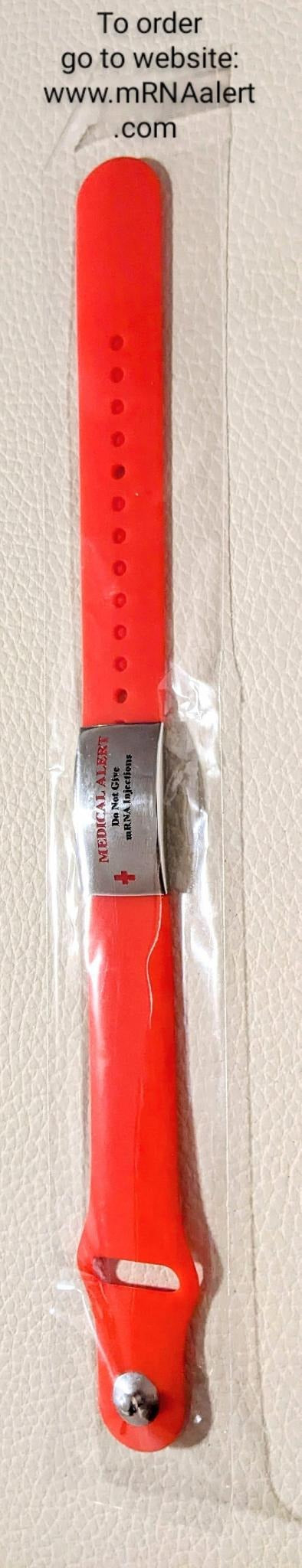 Red Silicone Bracelet With: "Do Not Give mRNA Injections" on a Stainless Steel Plate