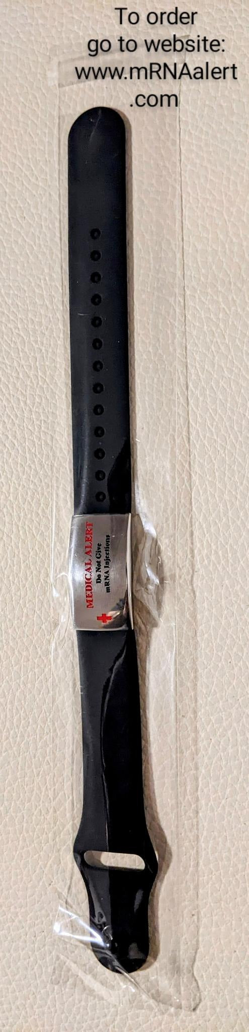 Black Silicone Bracelet With: "Do Not Give mRNA Injections" on a Stainless Steel Plate